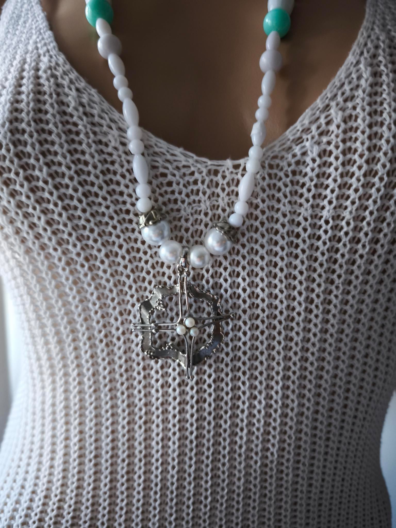 Wunderschöne Boho Kette aus verschiedenen Perlen.