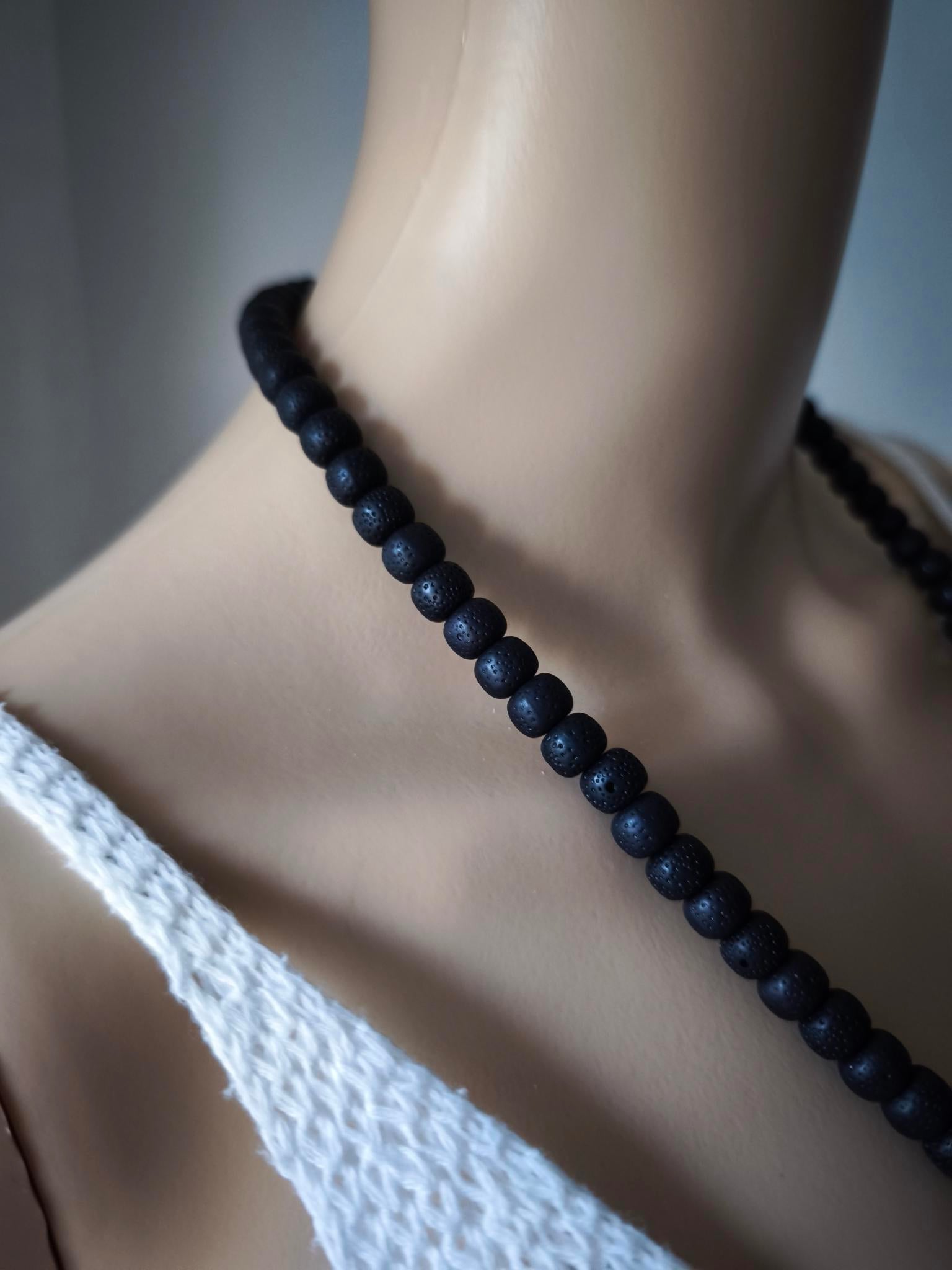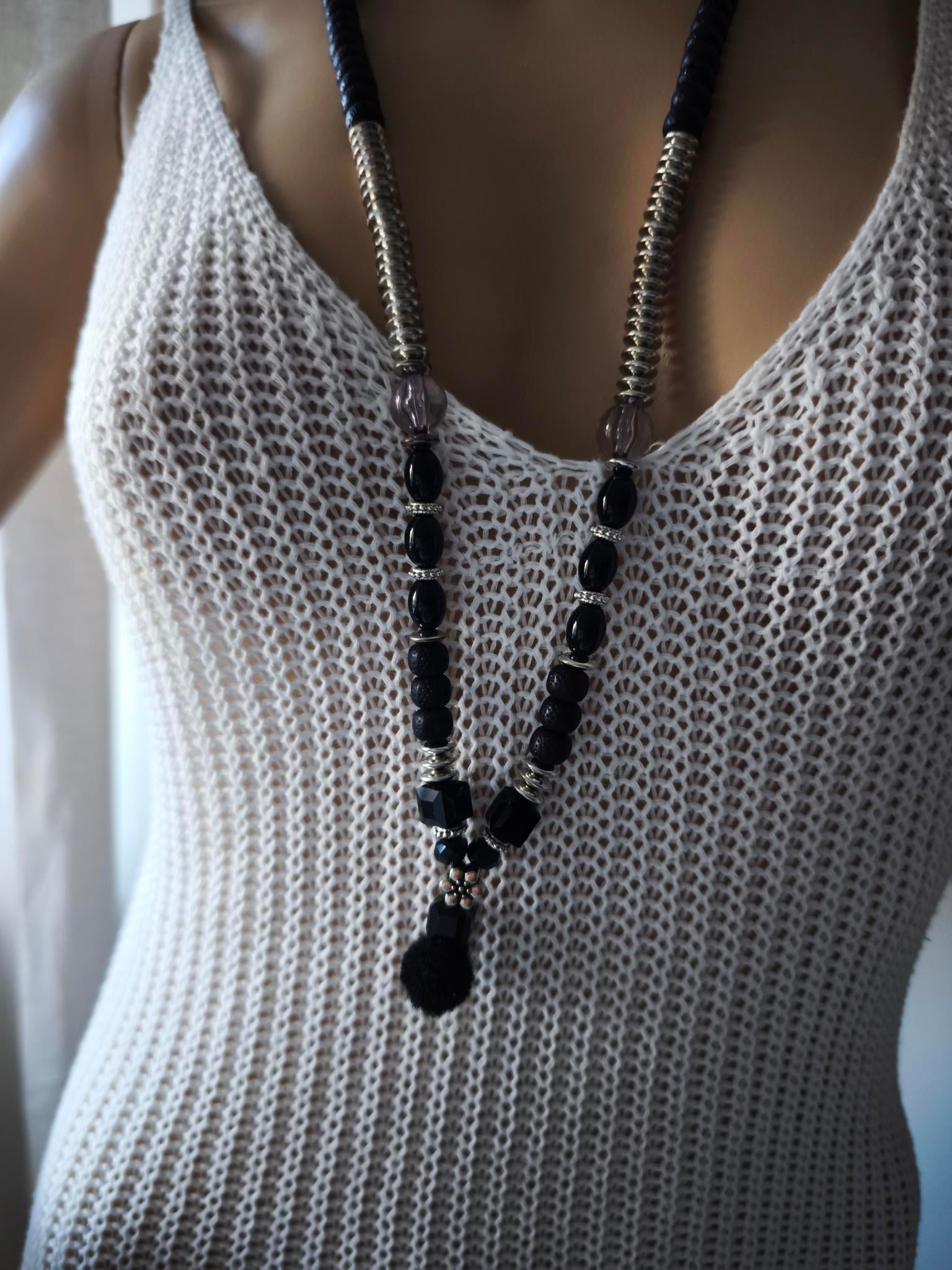 Boho Ibiza Halskette Hippie Festival XL Perlen Bommel Black Silber