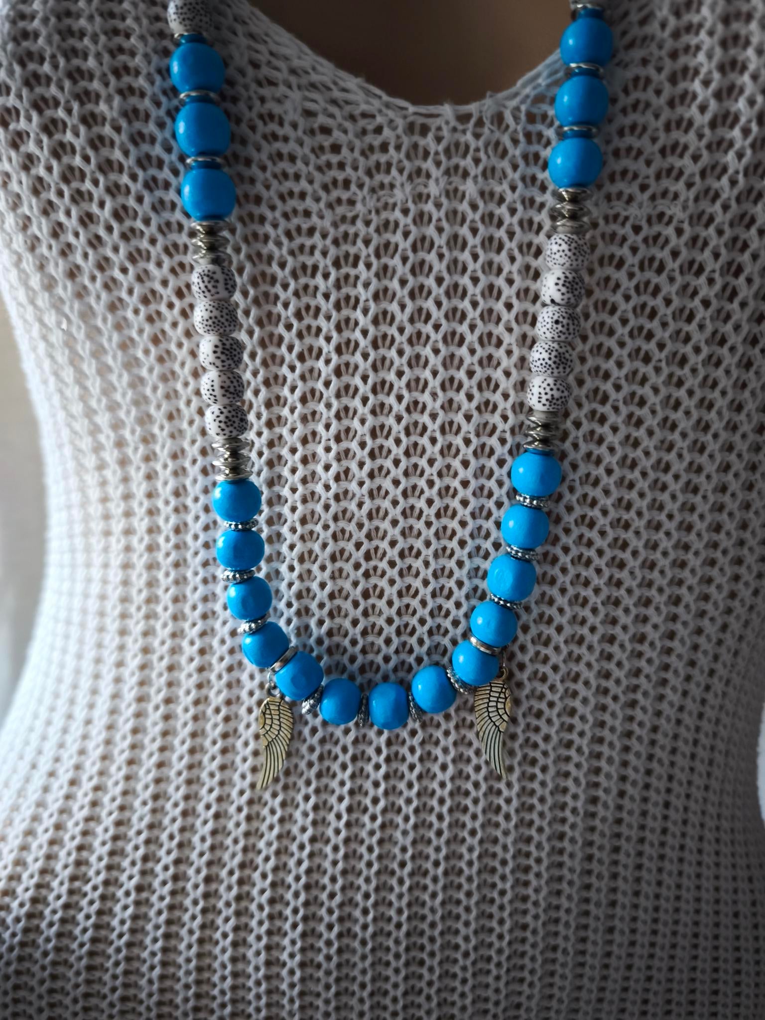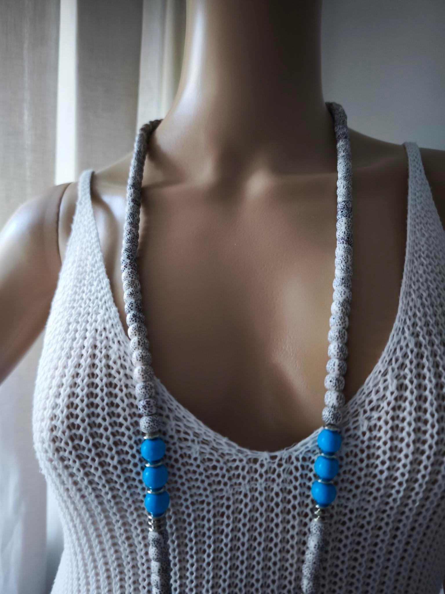 Boho Ibiza Halskette Hippie Festival XL Perlen White Azur