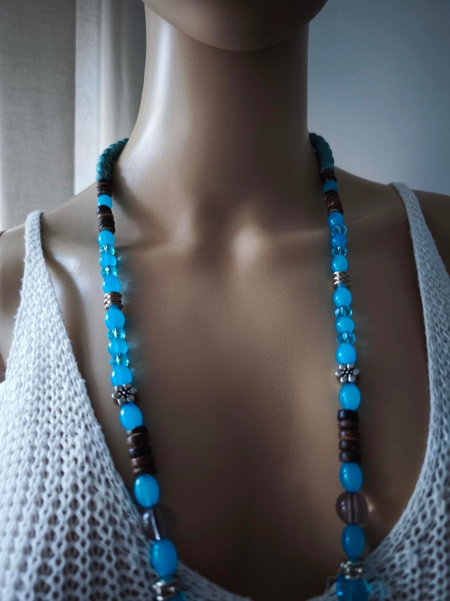 Boho Ibiza Halskette Hippie Festival XXL Perlen Quaste Türkis