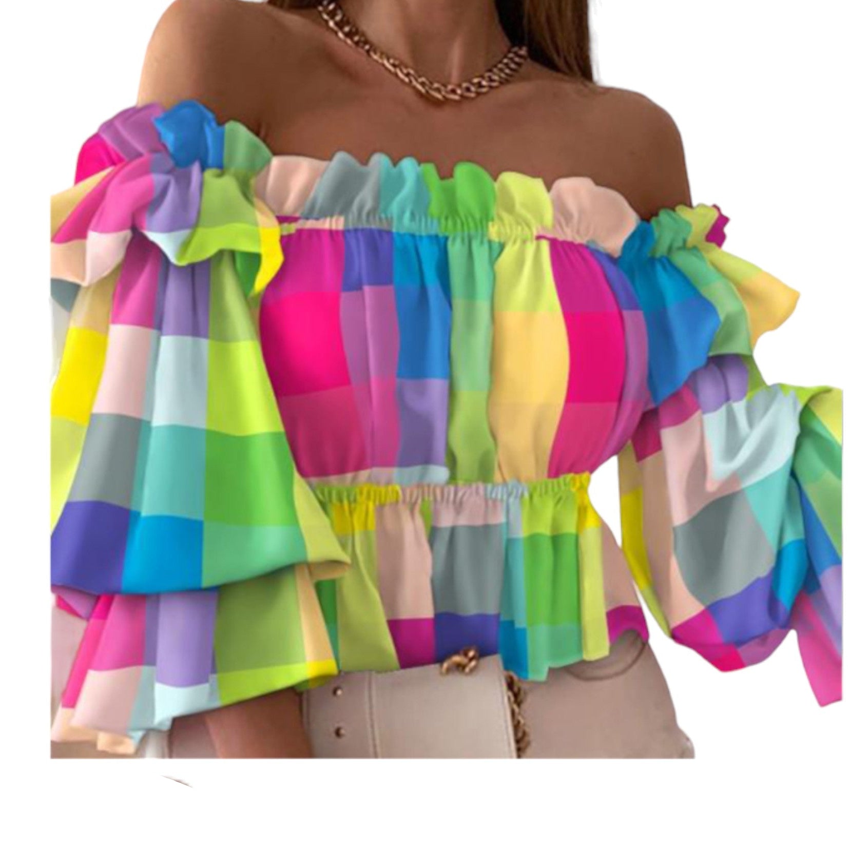 Sexy Carmen Bluse Boho – Ibiza Stil, Caro/Colour