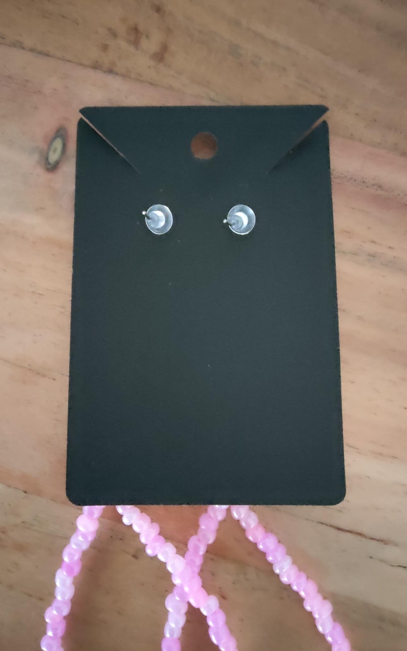 Ohrringe zum einhängen mit Silikon Stöpsel als Verschluss. Halskette einfach überziehen und fertig.