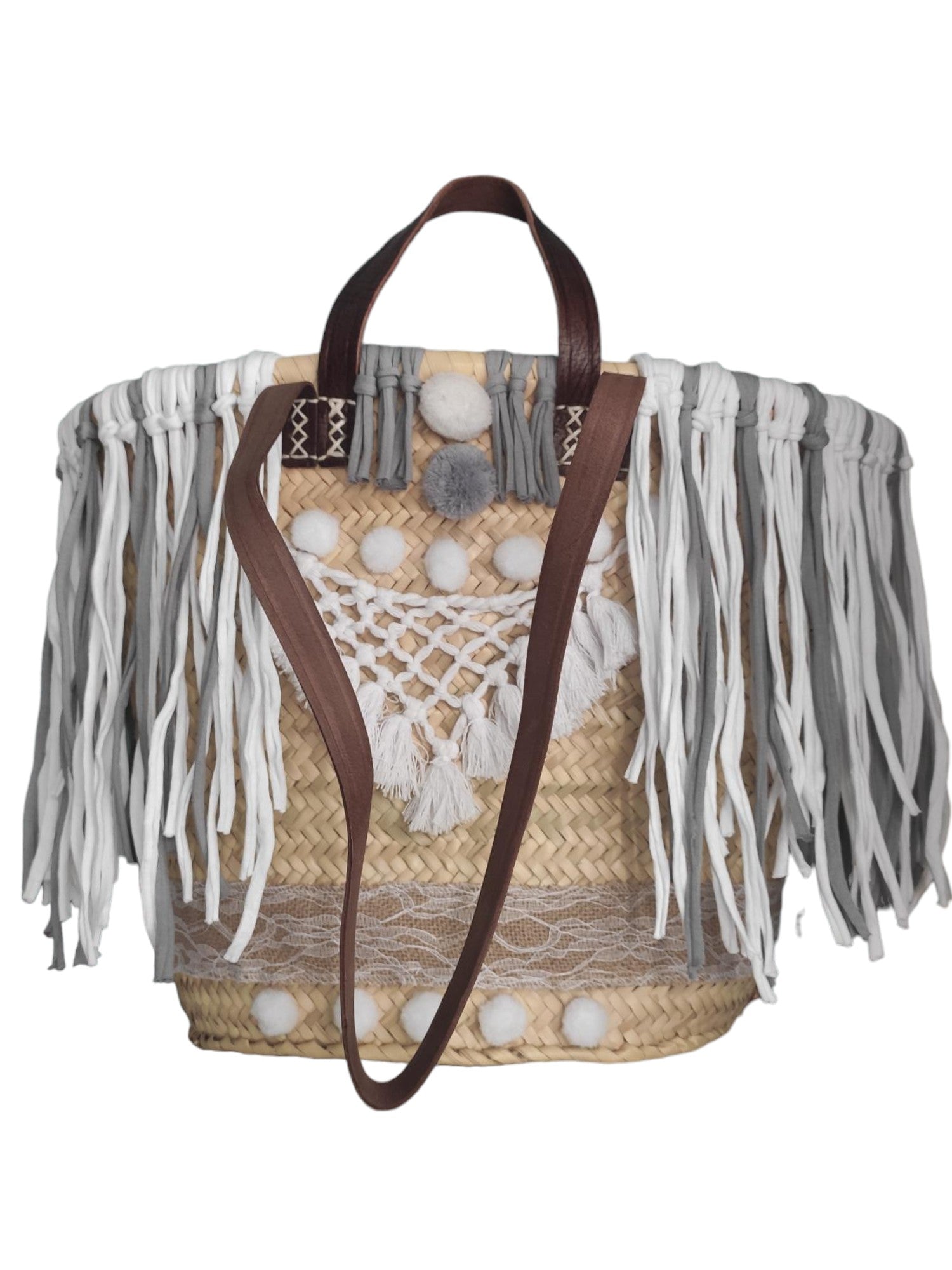 Mit ihren langen Fransen, kleinen Pompoms und eingearbeiteten weißen Boho Deckchen (vorn), ist sie ein absoluter Eyecatcher und der perfekte Begleiter für Freizeit und Reisen.