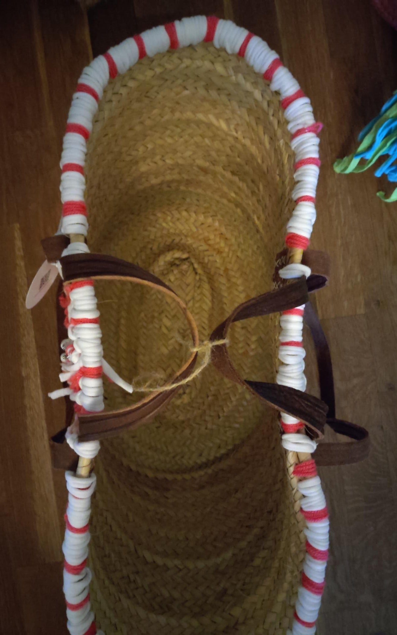 Diese Korbtasche ist offen und hat viel Platz Strandutensilien oder für Shopping Erlebnisse, doppelte Tragegriffe und Tragegurte, bestehend aus stabilem Leder.