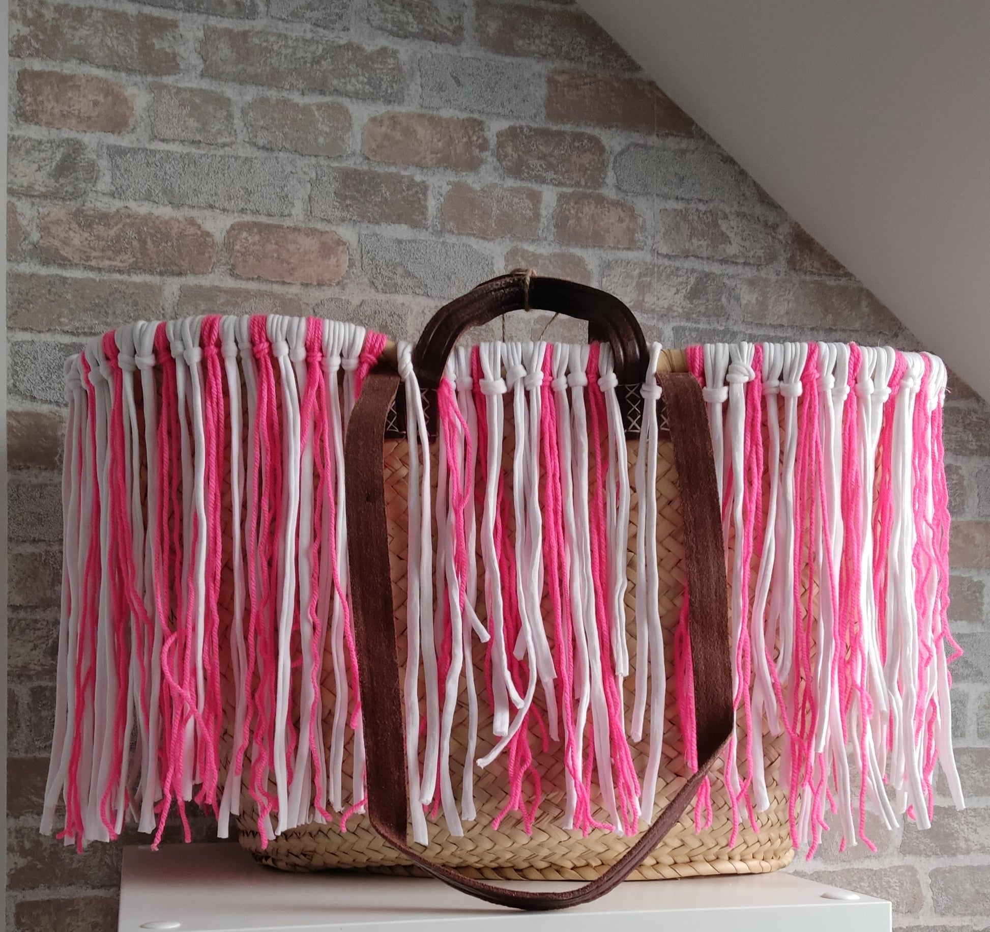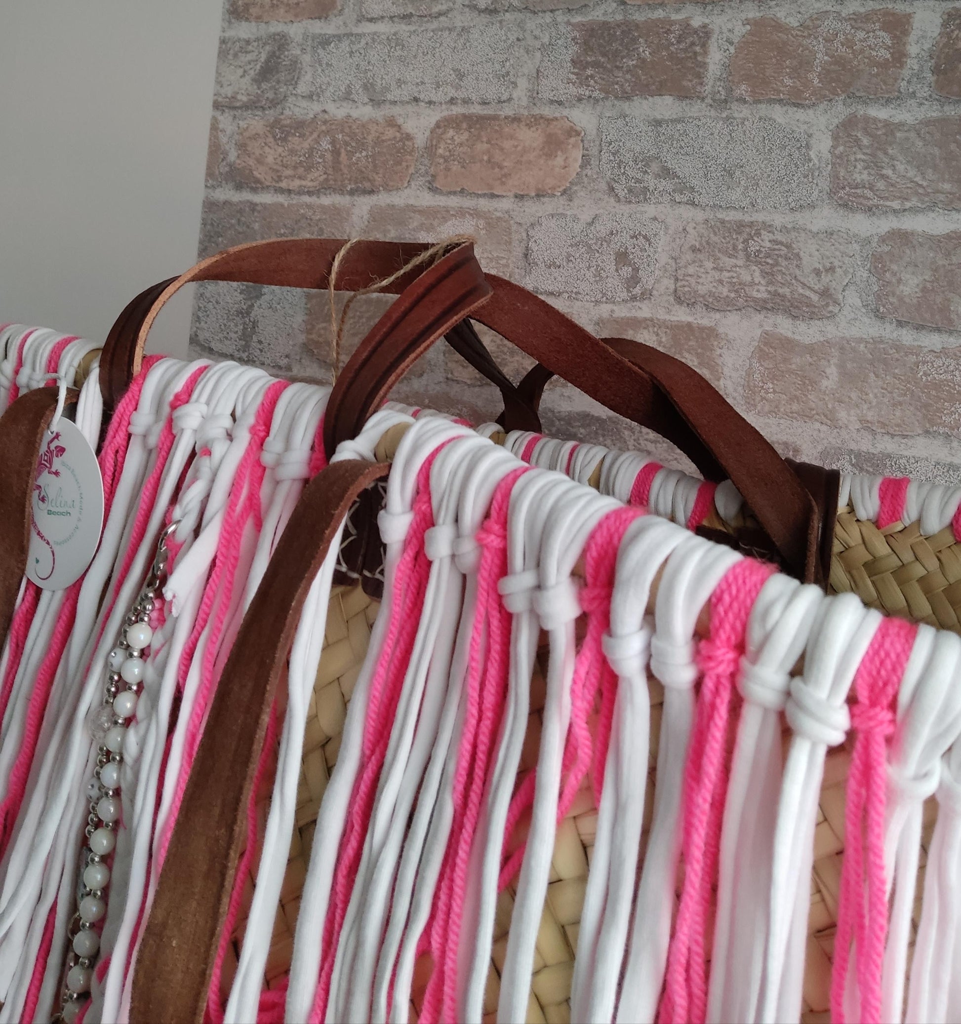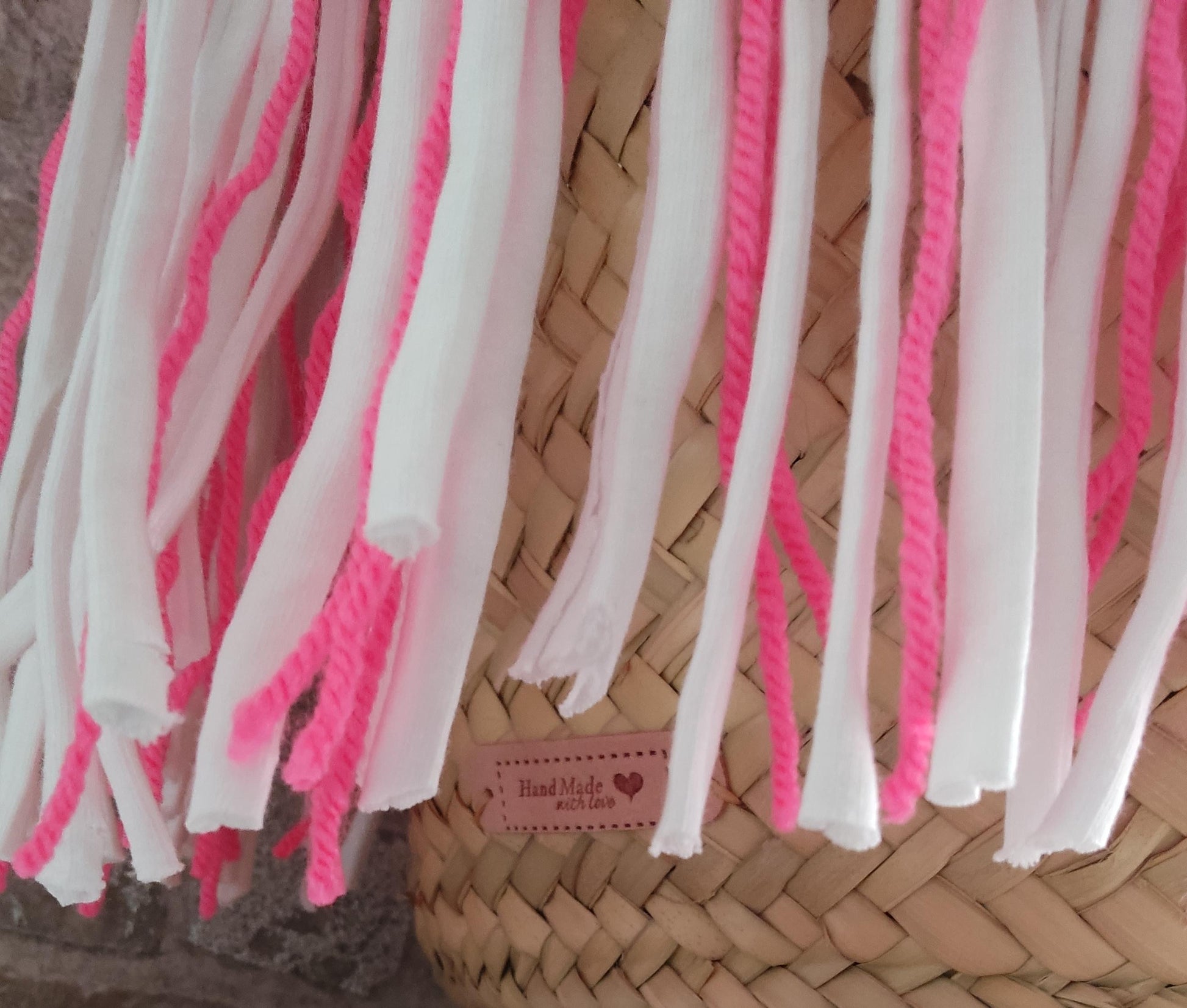 Ibiza Korbtasche Strandtasche XXL Boho Pink/White Hand Made