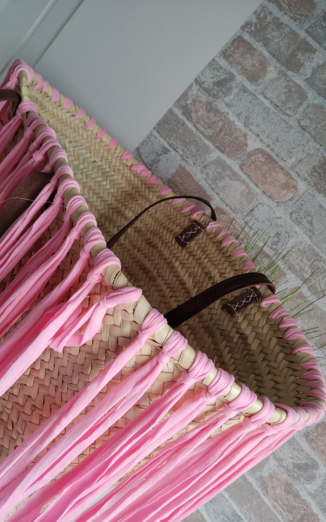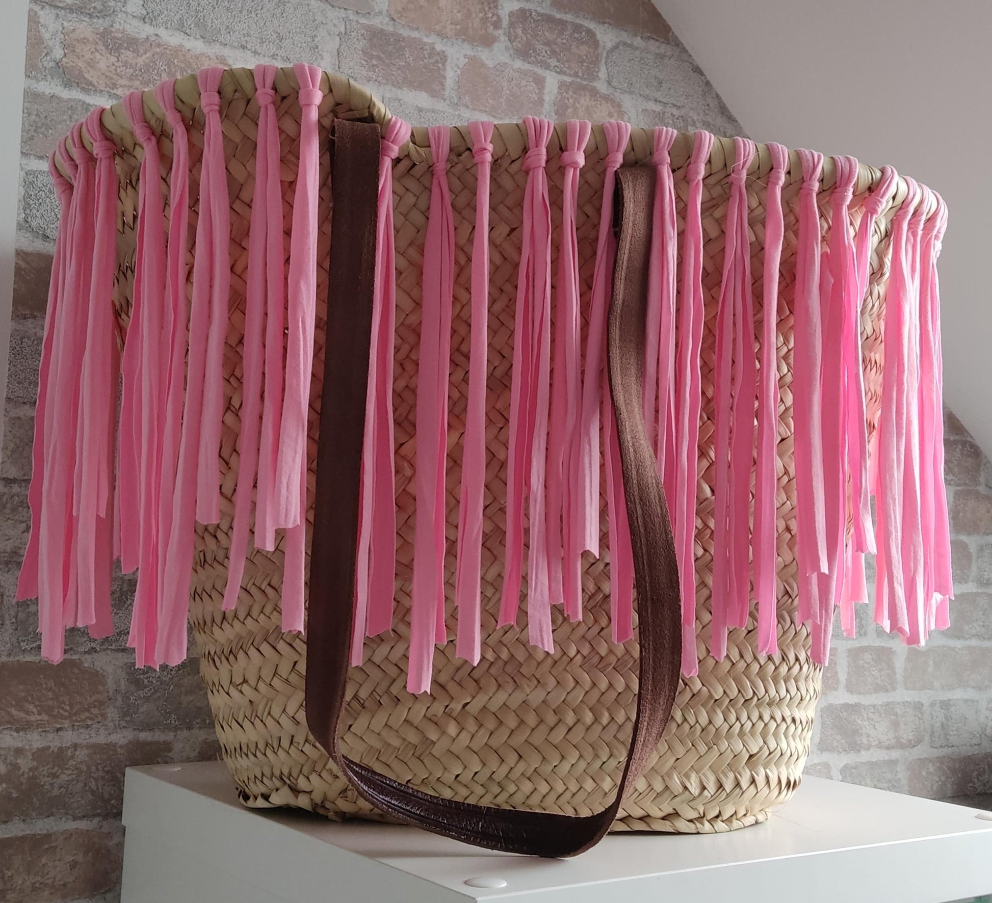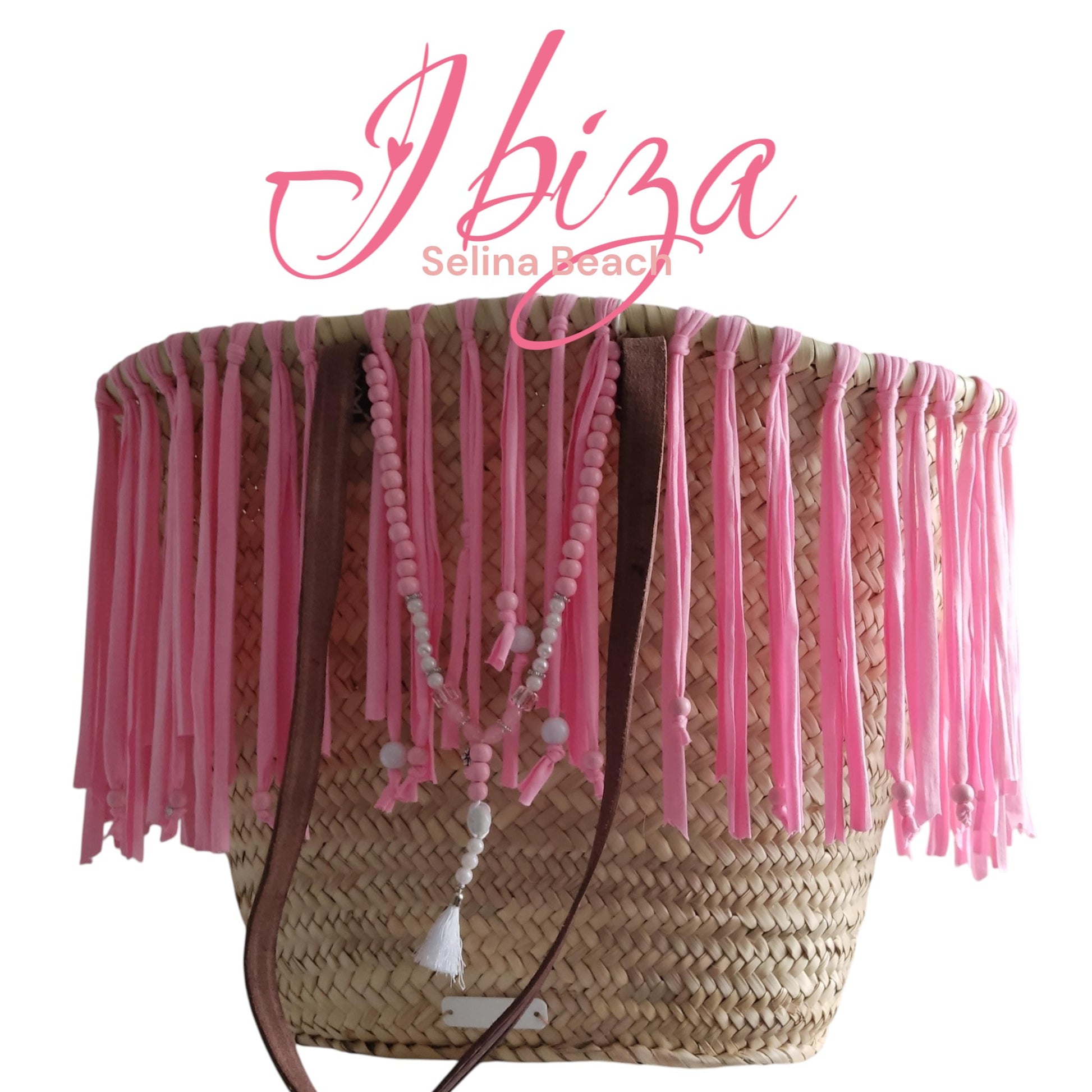 Ibiza Korbtasche Strandtasche XXL Boho Rosa Fransen Hand Made